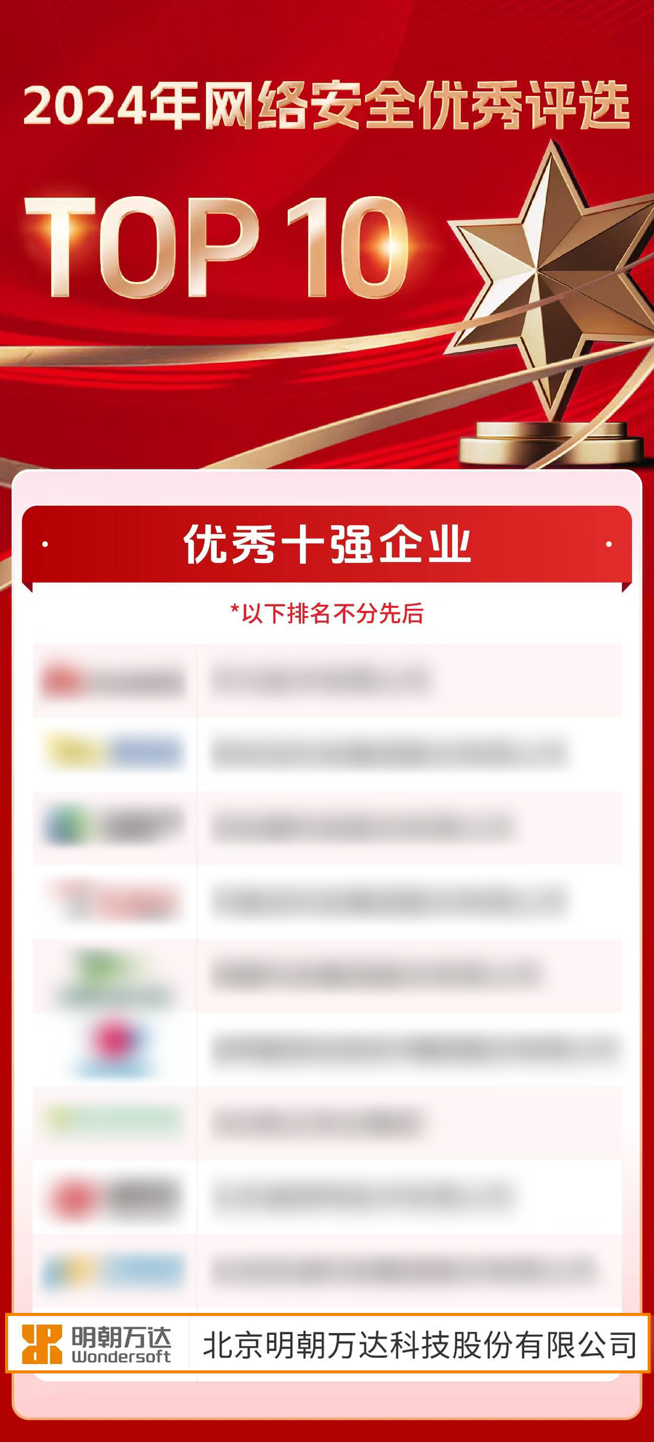 明朝萬達榮耀入選2024年網(wǎng)絡安全十強企業(yè)