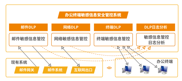 辦公終端敏感信息安全管控加固項目旨在通過細(xì)粒度底層化部署,直接對辦公終端計算機上存儲、流轉(zhuǎn)的敏感信息進行有效管控,降低該類敏感信息泄露導(dǎo)致信息安全事故發(fā)生的可能性;通過多種技術(shù)手段,提供對敏感信息存儲、流轉(zhuǎn)流程的追溯能力,保證泄露發(fā)生后泄露源的快速定位與追責(zé);通過針對行內(nèi)外發(fā)郵件與互聯(lián)網(wǎng)出口訪問流量進行敏感信息掃描,有效避免攜帶有敏感信息的數(shù)據(jù)外泄;此外,行內(nèi)信息安全管理人員可通過本系統(tǒng)提供的詳實、實時日志報表,高效統(tǒng)計、分析并定位各類安全風(fēng)險,從而提前杜絕信息安全事故的發(fā)生。