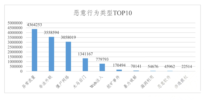 1.惡意網(wǎng)絡(luò)行為呈現(xiàn)增長(zhǎng)態(tài)勢(shì),非法外聯(lián)現(xiàn)象嚴(yán)重