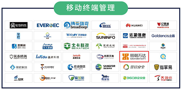 本次發(fā)布的產(chǎn)業(yè)全景圖,共分為19個一級分類,79個二級分類,覆蓋550+家安全廠商。明朝萬達本次入選數(shù)據(jù)防泄漏DLP、數(shù)據(jù)脫敏、勒索軟件防護、移動終端管理、網(wǎng)頁防篡改、郵件安全、UEBA7個二級分類。