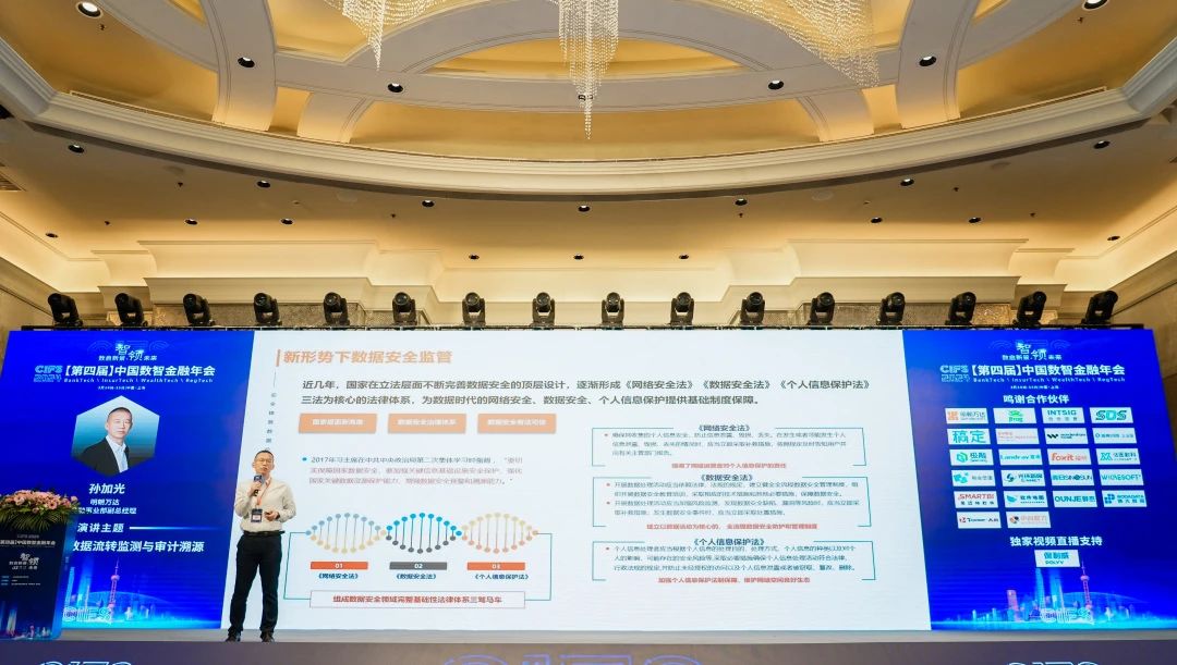 在“金融數(shù)字戰(zhàn)略與技術(shù)創(chuàng)新”開幕論壇中,明朝萬達(dá)金融事業(yè)部副總經(jīng)理受邀參加并發(fā)表主題為《業(yè)務(wù)領(lǐng)域敏感數(shù)據(jù)流轉(zhuǎn)和審計(jì)溯源方案》的演講。