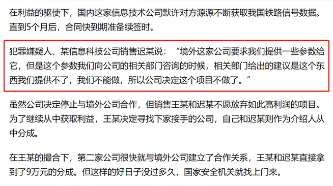日前,國家安全機(jī)關(guān)破獲一起為境外刺探、非法提供高鐵數(shù)據(jù)的重要案件。上海某科技公司為謀取利益,持續(xù)采集、傳遞數(shù)據(jù)給某境外公司。