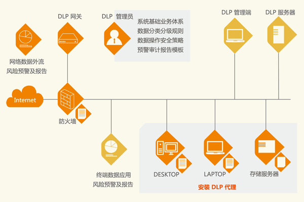 ? ? ? 為實現(xiàn)集中統(tǒng)一化的管理,終端數(shù)據(jù)防泄漏系統(tǒng)分別部署一臺主服務器、一臺熱備服務器及多臺負載服務器,網(wǎng)絡數(shù)據(jù)防泄漏系統(tǒng)和綜合管理平臺分別部署一臺主服務器、一臺熱備服務器,組成數(shù)據(jù)防泄漏系統(tǒng)的服務器區(qū)域,確保冗余和高可用性。由綜合管理平臺統(tǒng)一提供多級管理模式,實現(xiàn)對各分行的分級管理。